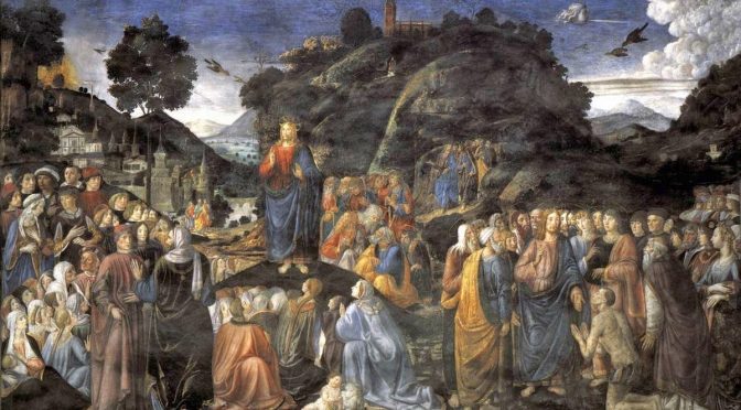 U ono vrijeme: Isus siđe s dvanaestoricom i zaustavi se na ravnu. Podigne oči prema učenicima i govoraše:
